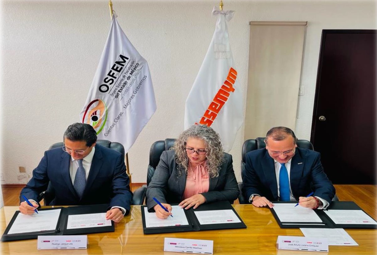 En la firma estuvieron presentes el titular de la Unidad de Asuntos Jurídicos del OSFEM, Simón Reyes Ramos e Iván Arístides Monje González, encargado de la Unidad Jurídica Consultiva y de Igualdad de Género, ISSEMyM.